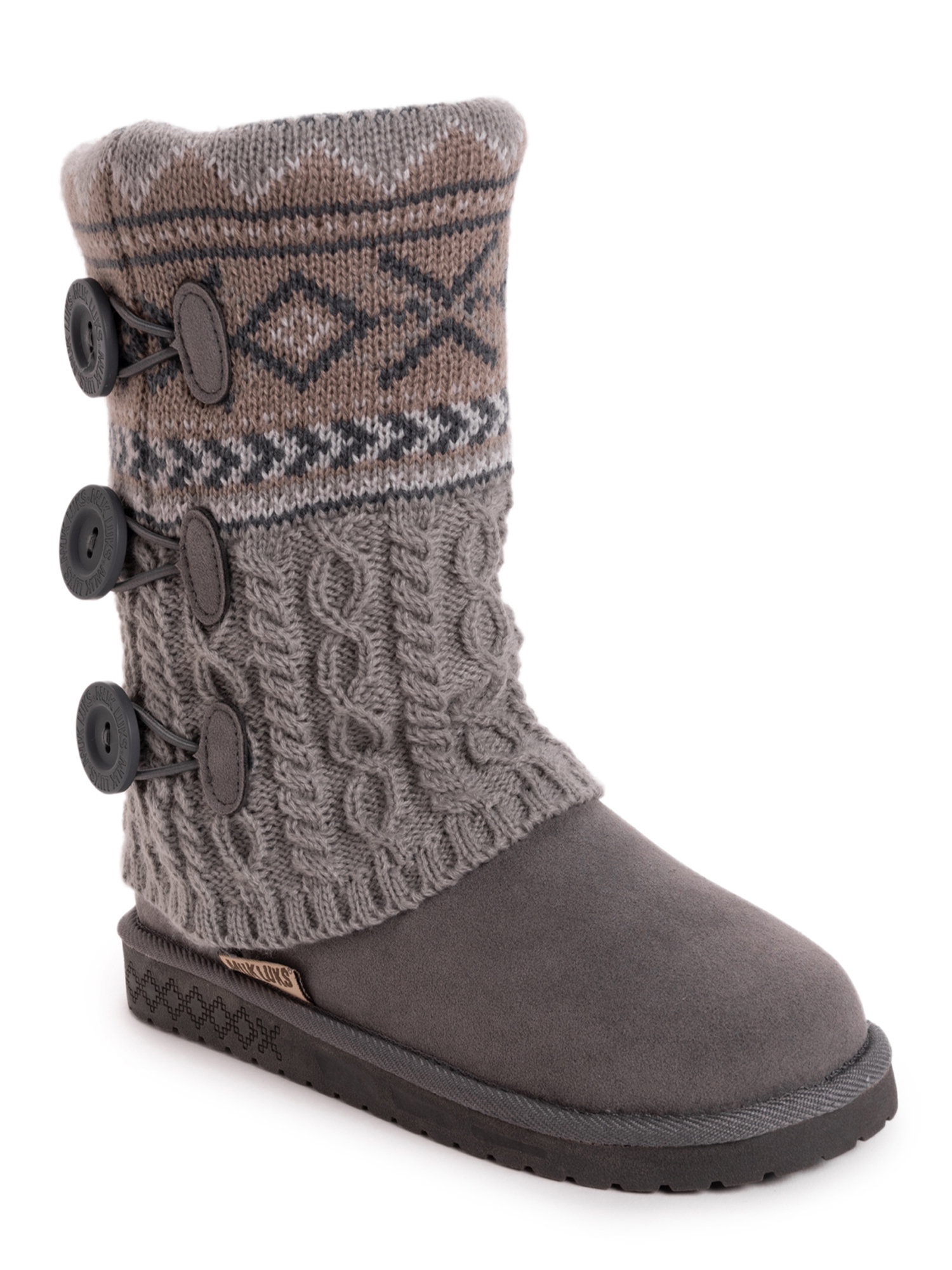 Muk Luks Women S Cheryl Faux Fur Lined Side Button Pattern Knit Boots Wide Width Available Walmart Com